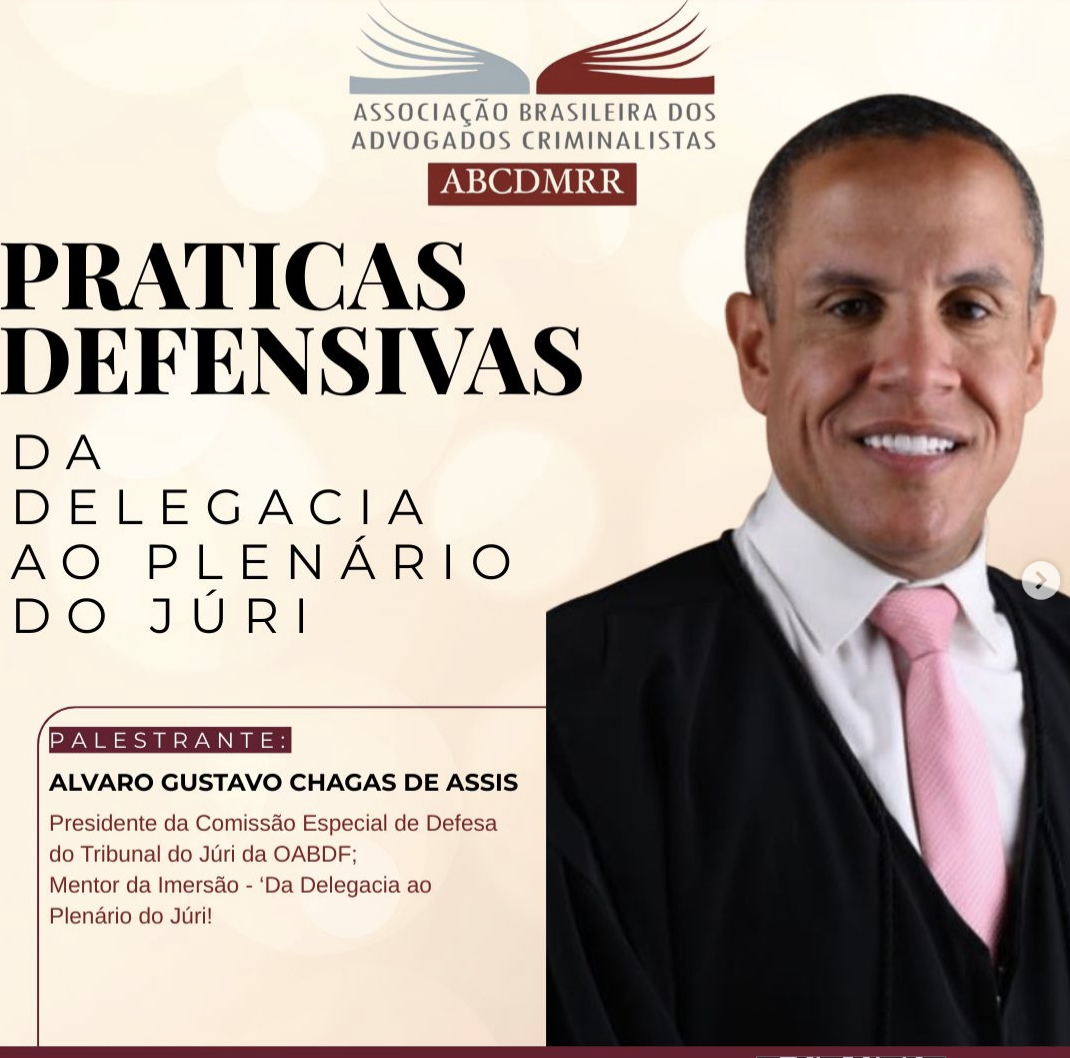 A Associação Brasileira dos Advogados Criminalistas - ABCDMRR, convida advogadas e advogados para uma palestra prática e estratégica sobre atuação defensiva no Tribunal do Júri, com Álvaro Gustavo Chagas de Assis, criminalista com ampla experiência na área.