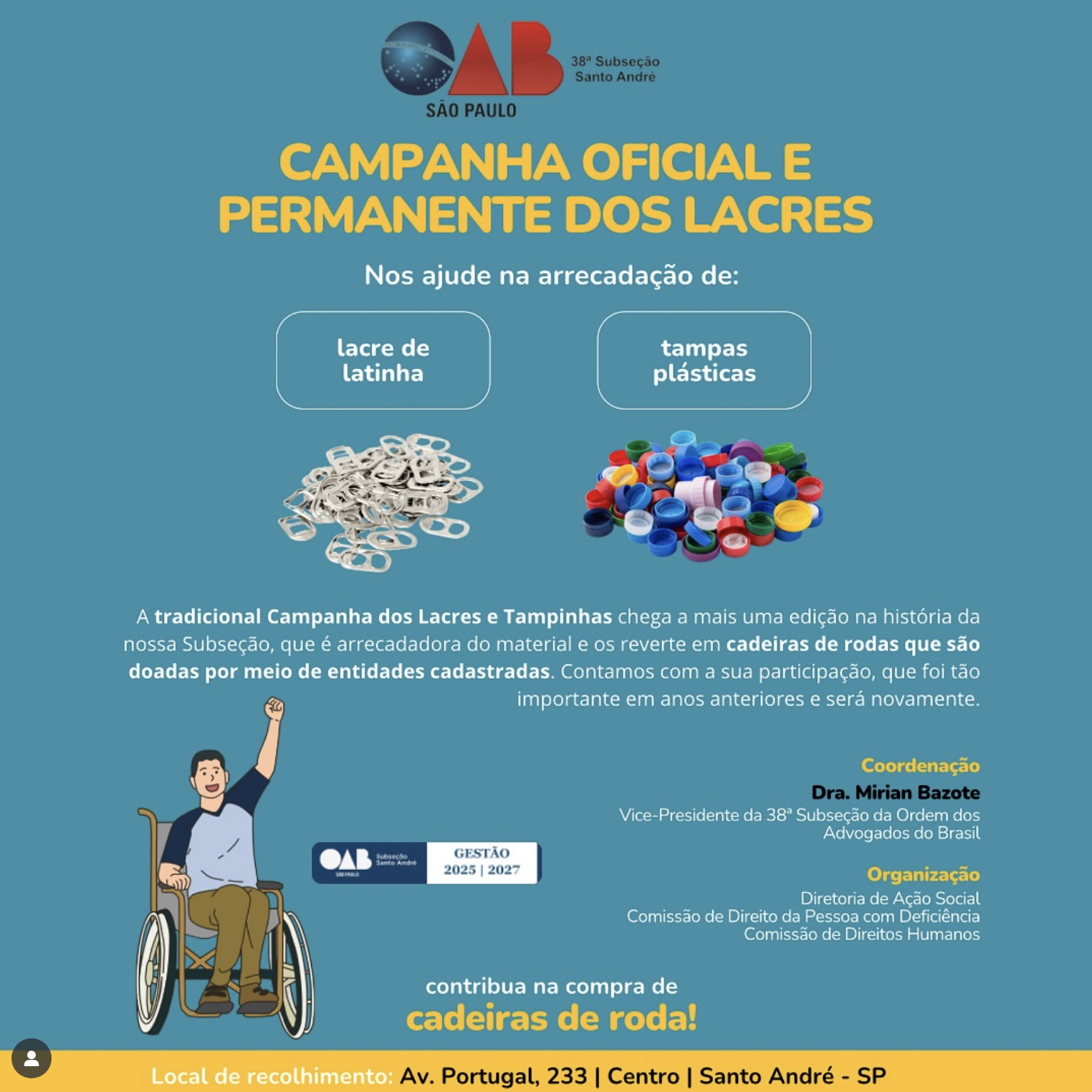 A tradicional Campanha dos Lacres e Tampinhas chega a mais uma edição aqui na nossa Subseção! Seguimos firmes na missão de transformar pequenos gestos em grandes mudanças.